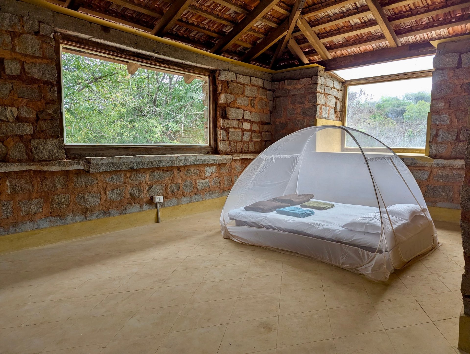 Our earth and stone cottages are designed to give you a warm, earthy stay while keeping close to nature. Built using natural materials with minimal cement and steel, they stay cool during the day and cozy at night. Each cottage features beautiful coconut wood and thatched roofs, along with an attached western-style bathroom for your comfort. Simple yet charming, these cottages offer the perfect blend of rustic aesthetics and essential amenities — ideal for those who want a little more comfort without losing the natural vibe.