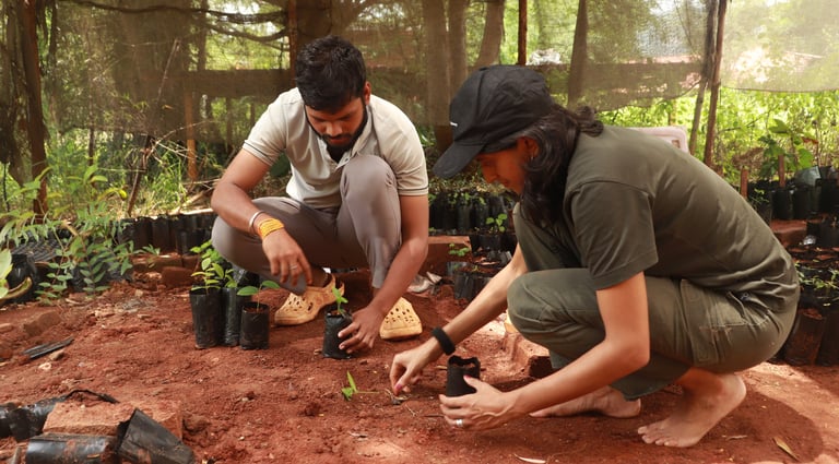 Through our rewilding initiatives, we aim to create safe habitats for native flora and fauna, assessing the impact on biodiversity. Our efforts contribute to restoring ecological balance in the region. We now have our own native tree nursery where we germinate native trees from seeds, many of them collected from surrounding habitat. If there are are 100 reptile species in the habitat surrounding our camp, there are about a thousand native plant and tree species.We continue to identify and learn more about more and more tree species, increasing our knowledge base and trying to create a mini arboretum of native trees.
